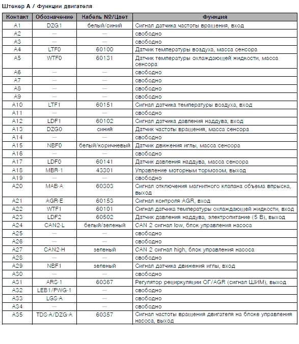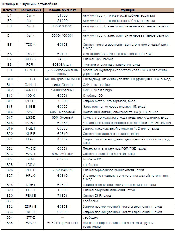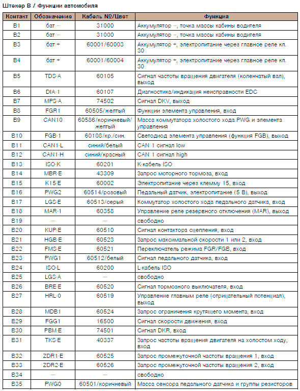 Разводка контактов блока управления двигателя EDC 6.4 ступень 1