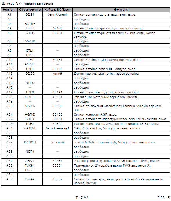 Разводка контактов блока управления двигателя EDC 6.4 ступень 2