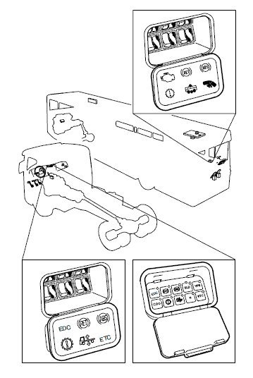 Два варианта размещения диагностического выключателя и диагностической лампы на грузовых автомобилях.