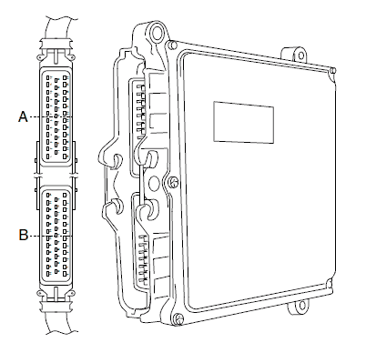 Блок управления EDC соединяется с элементами системы EDC и другими системами автомобиля с помощью двух 35-контактных разъемов A и B. См. рис.