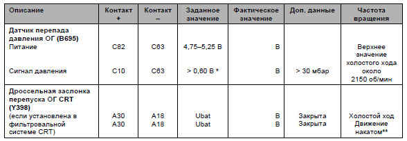 ** Проверка функции движения накатом в режиме езды или на роликовом стенде: разгоните автомобиль и отпустите педаль акселератора => дроссельная заслонка перепуска ОГ должна быть закрыта, а клапан системы рециркуляции отработанных газов открыт.
