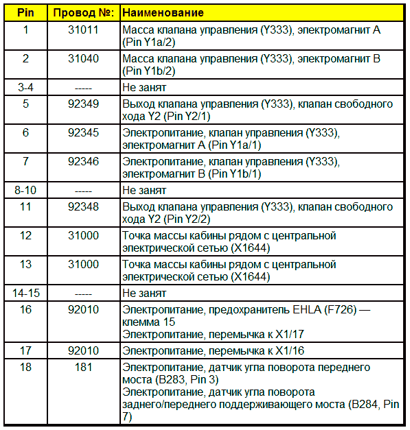 Штекерная разводка контактов клапана управления (Y333) — TGM/TGS/TGX