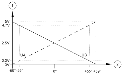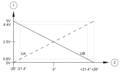 Напряжения датчика в положении прямолинейного движения составляют 2,5 ± 0,01 В. Оба напряжения датчика сравниваются друг с другом и проверяются на достоверность блоком управления.