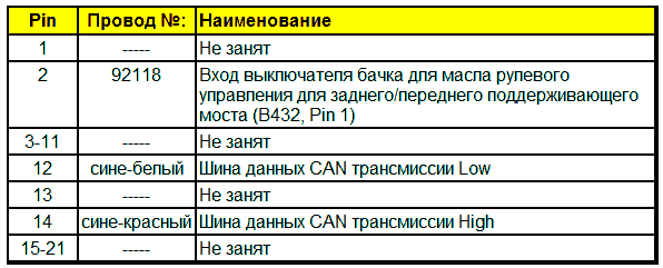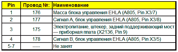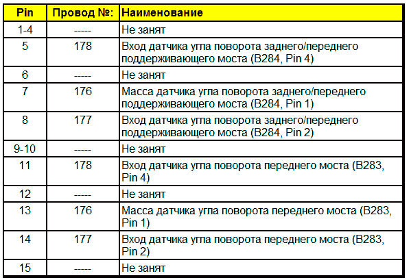 Штекерная разводка контактов датчика угла поворота — заднего/переднего поддерживающего моста (B284)
