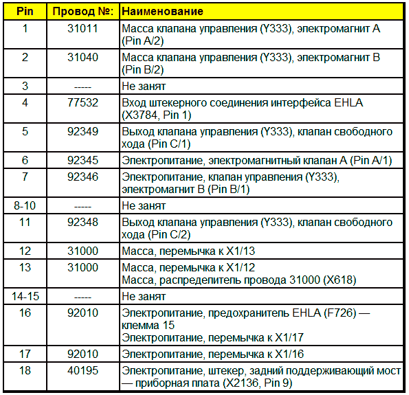 Примечание. Блок управления EHLA не имеет К-провода. Блоки управления с диагностикой KWP-on-CAN используют К-провод FFR. FFR открывает через CAN межсетевой шлюз к блоку управления EHLA. Настройка/диагностика осуществляются с помощью автомобильного компьютера (A403).