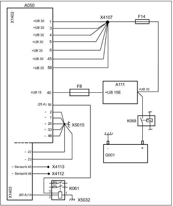 Схема подключения: + электропитание основного ЭБУ A050
