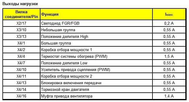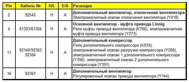 Выходные сигналы для дополнительного компрессора представляют собой цифровые сигналы, для основного и дополнительного вентиляторов - сигнал PWM.