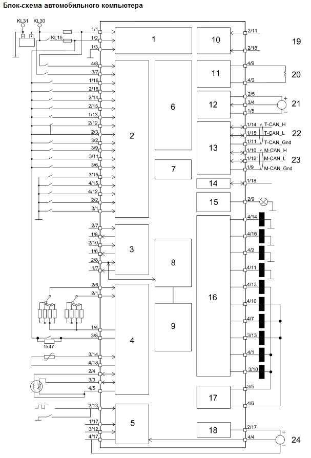 Входы и выходы автомобильного компьютера
