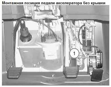 Педаль акселератора (1) представляет собой окончательно смонтированный узел, установленный на педальном механизме.