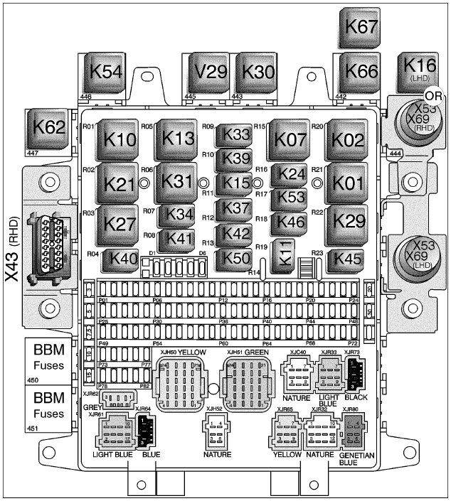 - K45 Реле, передняя противотуманная фара (поз. 23) ............................................... (GB2:1 B)