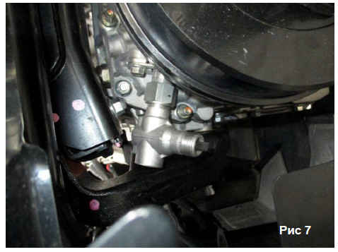 4.5) Проложить кабель датчика скорости вдоль левого лонжерона рамы и аккуратно закрепить его пластиковыми хомутами на основном жгуте электропроводки.