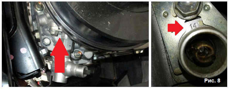 3.4) В смотровом окне прижимной пластины привода датчика скорости на коробке передач указано число зубьев шестерни привода (на рис. 6 это число равно 14).