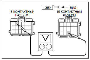 (3) Измерить напряжение между контактом № 5 18-контактного разъема и контактом № 13 15-контактного разъема.