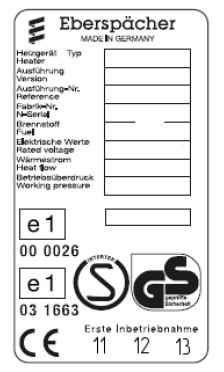 - стереть с дубликата заводской таблички (входит в стандартный установочный комплект подогревателя) обозначения всех годов, кроме текущего;