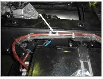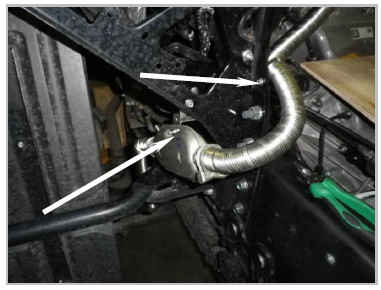 Зафиксировать выхлопной трубопровод с помощью металлического хомута из монтажного комплекта в штатном отверстии балки.