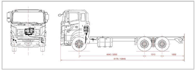 Hydronic устанавливается на раме шасси, по центру кузова за кабиной автомобиля.