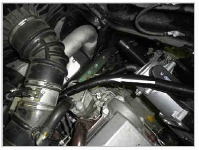 Закрепить патрубок забора воздуха с помощью хомута, входящего в монтажный комплект. Зафиксируете патрубок с помощью пластиковых хомутов из монтажного комплекта.