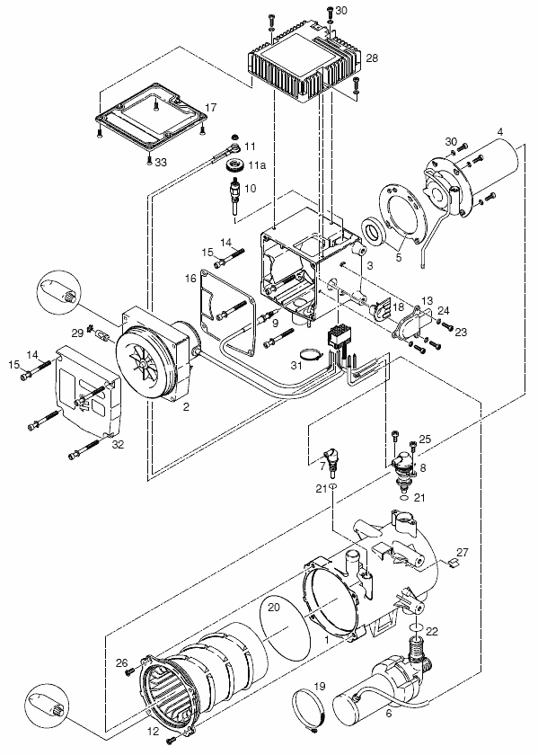 - 2 Нагнетатель воздуха в камеру сгорания (нанесите уплотнительную массу на переднюю сторону)