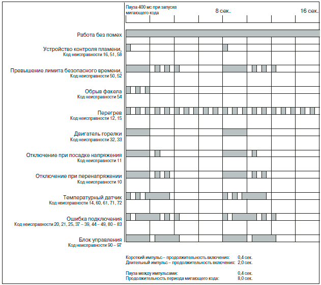 Неисправный компонент и тип неисправности отображаются блоком управления в виде мигающего кода