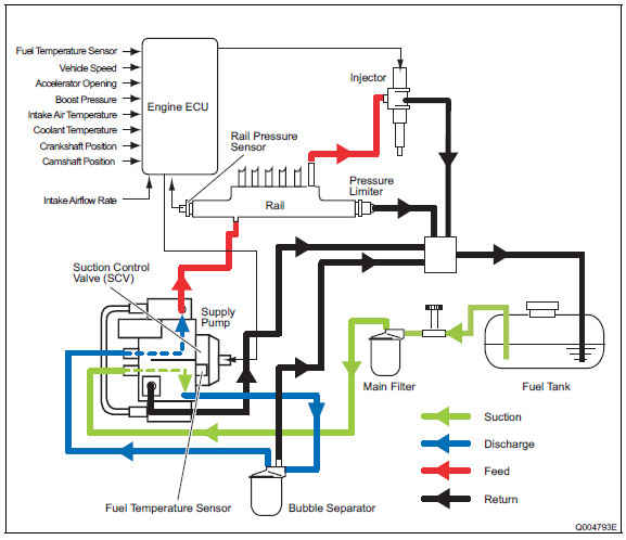 The CRS consists primarily of a supply pump, rail, injectors, and engine ECU.
