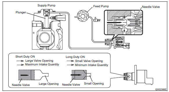 The HP3 and HP4 supply pumps have the same construction and operational characteristics as the conventional supply pumps. Supply pumps place fuel suctioned from the fuel tank under high pressure for delivery to the rail.