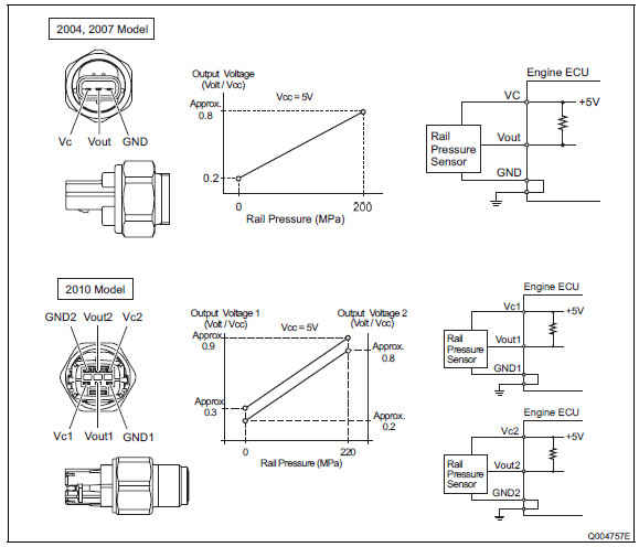 - The construction and operational characteristics of the rail pressure sensor equipped with the J05D/J08E engines are identical to the conventional sensor. The rail pressure sensor detects fuel pressure inside the rail.