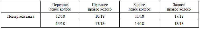 В следующей таблице показаны соответствия между всеми датчиками скорости колес и разъемом ЭБУ системы ABS.
