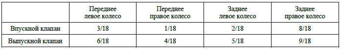В следующей таблице показаны соответствия для впускного клапана, выпускного клапана и контакта массы всех электромагнитных клапанов системы ABS.