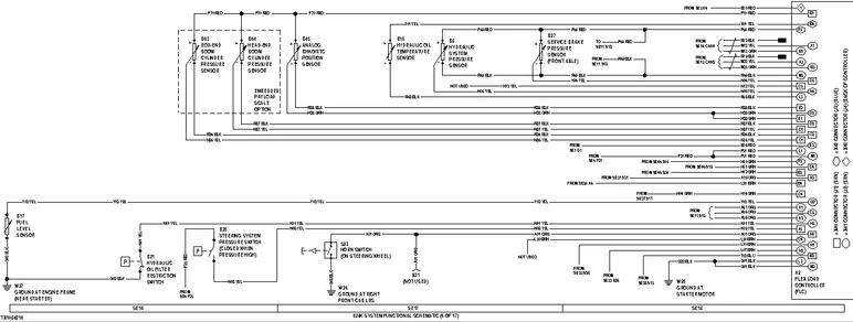 - SE16—Fuel Level, Hydraulic Oil Filter Restriction, Boom Cylinder Pressure, and Steering Pressure Circuits
