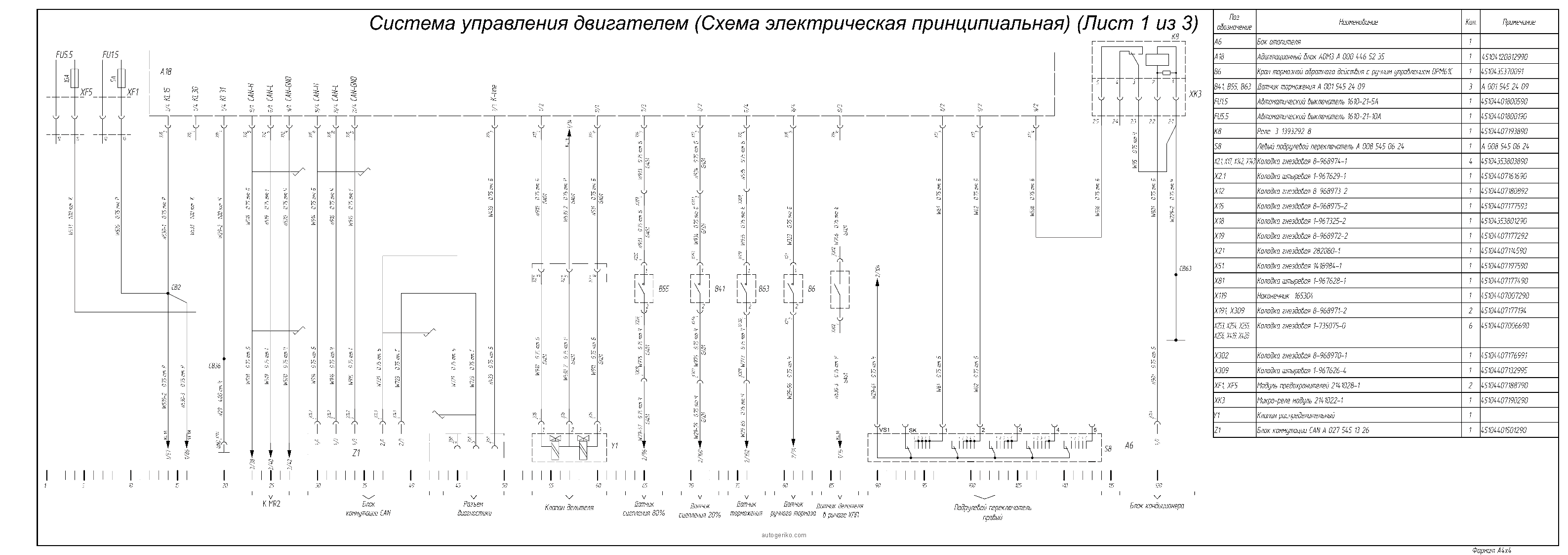 Система управления двигателем (Схема электрическая принципиальная) (1 из 3)