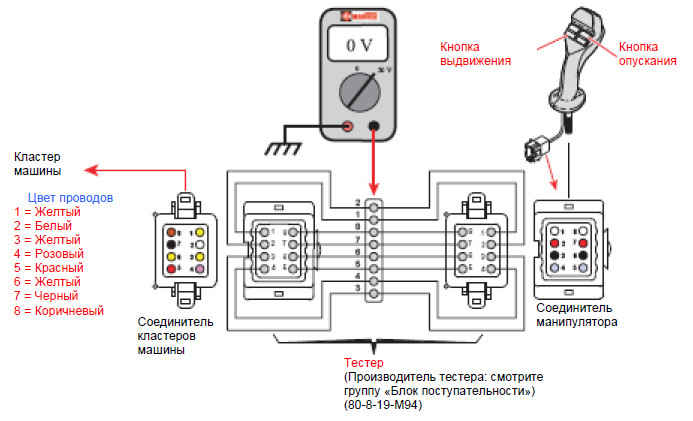 - Активируйте кнопки, передвигая их вперед и назад, и проверьте значения, показываемые вольтметром.