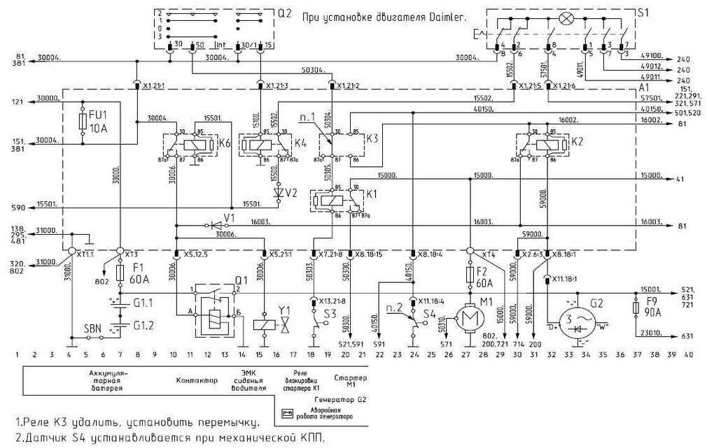 - Система электропитания при установке двигателя Daimler