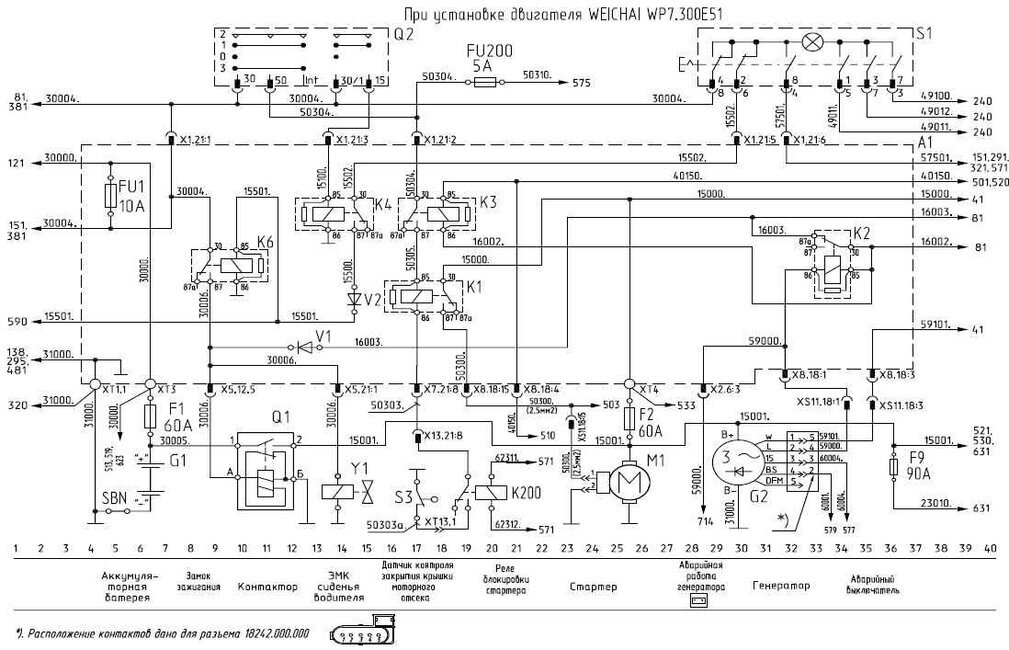 - Система электропитания при установке двигателя WEICHAI