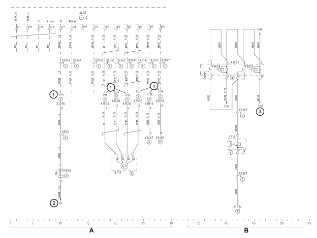 - X3438 Масса клеммной панели X3477 перемычка 1 и 6 в ящике задней части