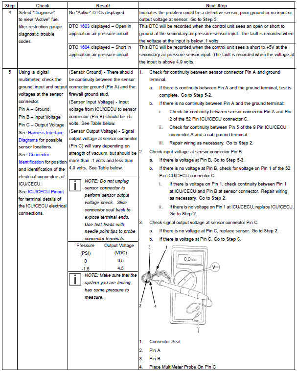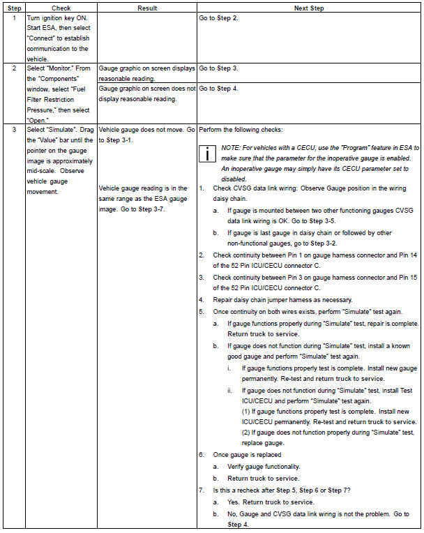 Symptom: Fuel filter restriction gauge inoperative.
