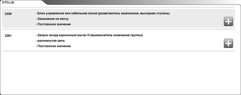 Ошибки связанные с неисправностью рычага передач на MAN