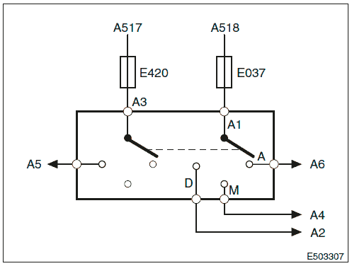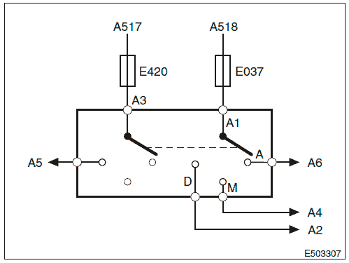 Активизация обоих контактных реле G015 и G426 при включении зажигания подает питание в определенные секции электрической системы (электропитание после включения зажигания). Это не