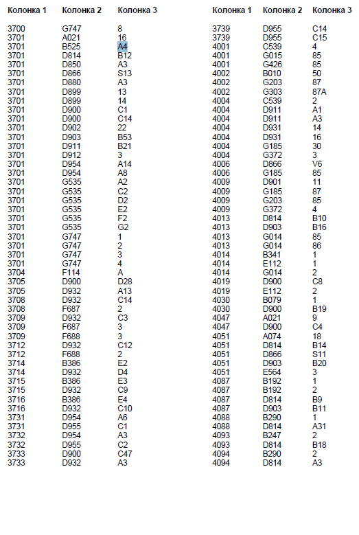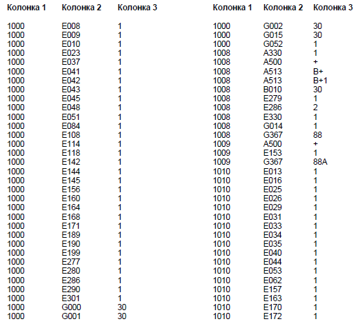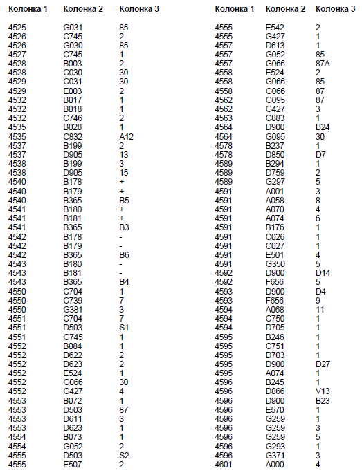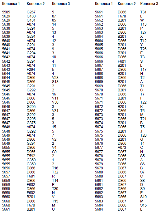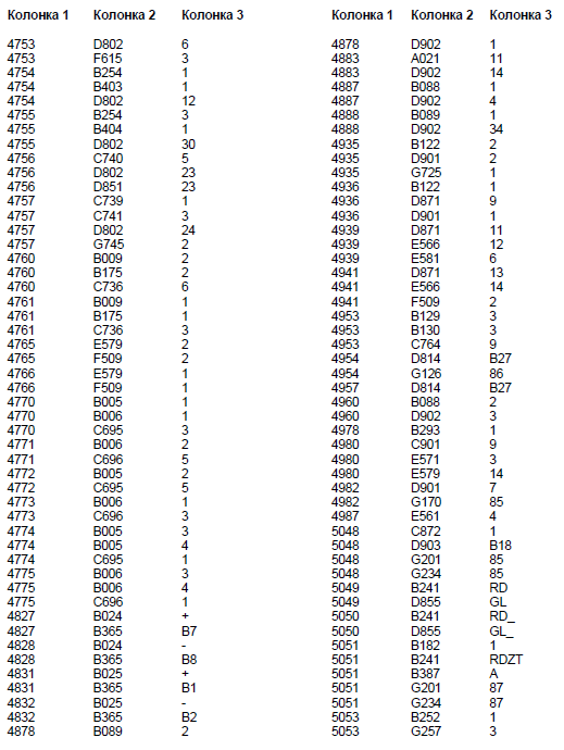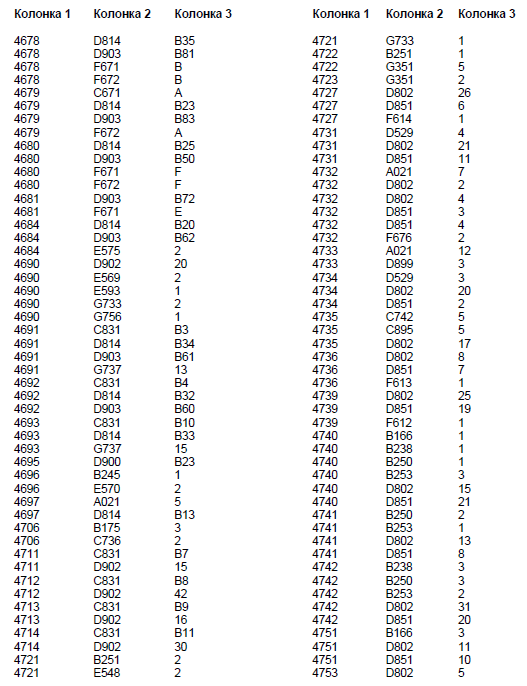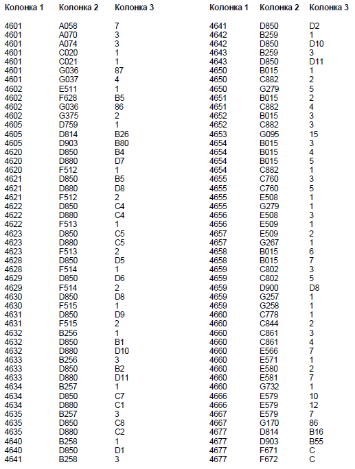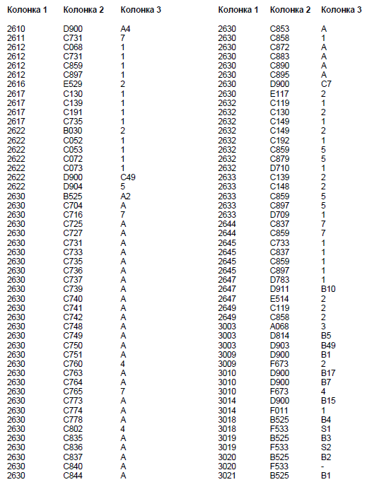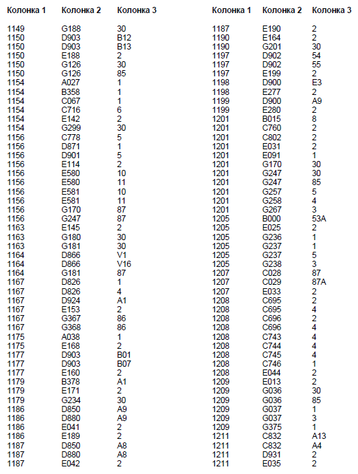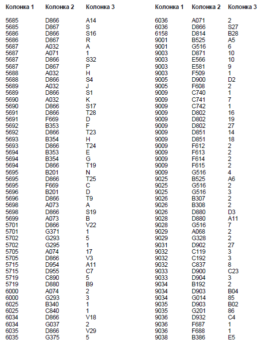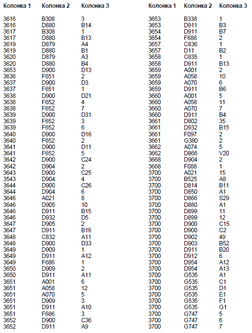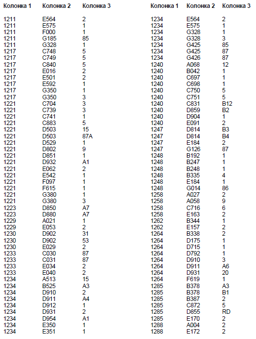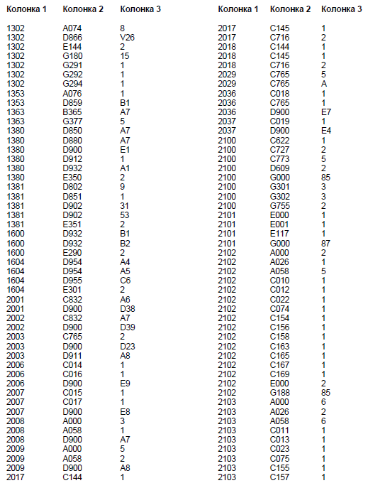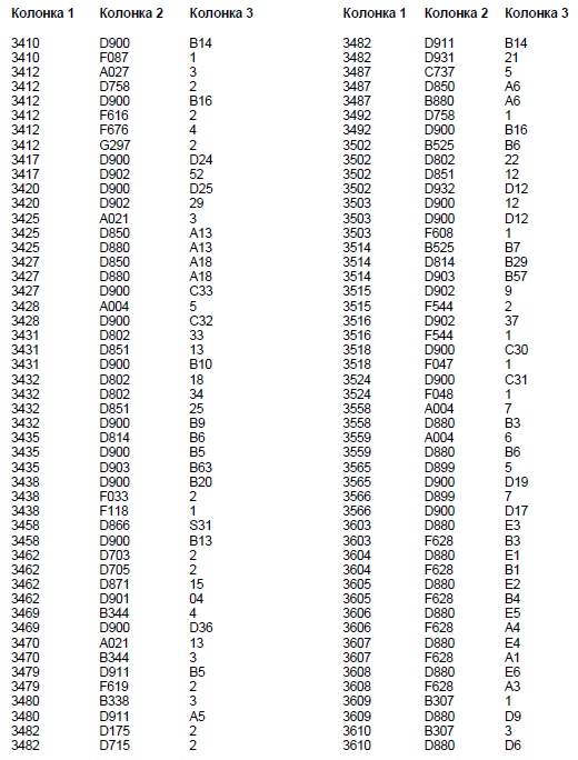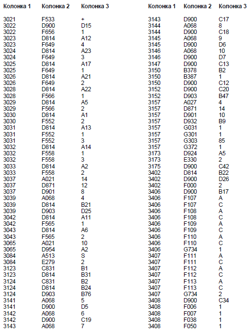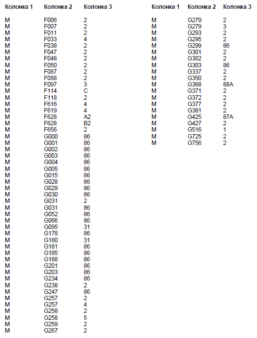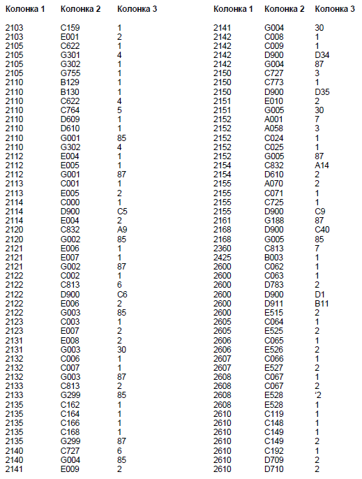 Колонка 2 - Основной кодовый номер узла