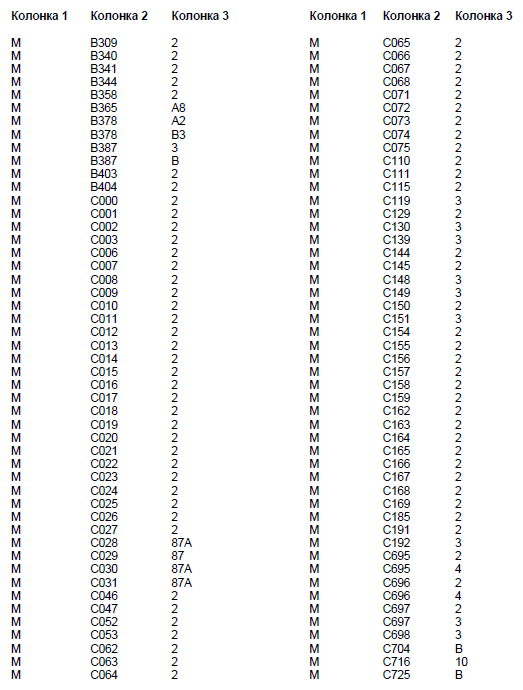 Коды неисправностей