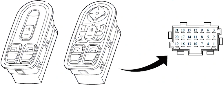 Переключатель управления стеклоподъемником со стороны второго водителя (C925) имеет два