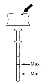 Щуп с отметкой минимального и максимального уровня масла расположен в верхней части