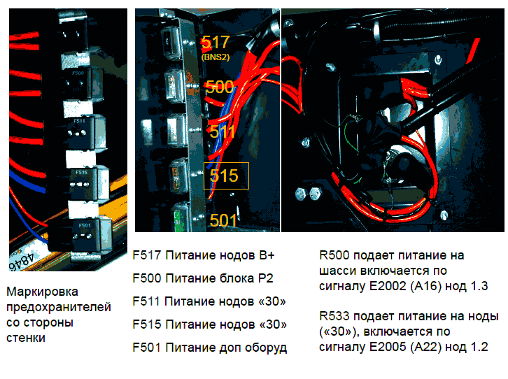 5 - Сигнал «Зарядка» от предохранителя F22 шины 61 к нодам А (Е509-7) в BNS1 или 1.2 (2005)-D2 в BNS2