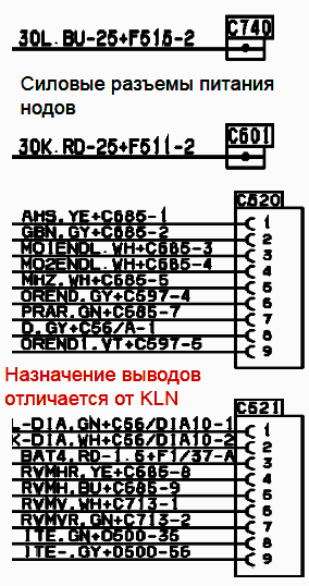4 - Сигнал «Зажигание включено» В BNS1 от F11 к ноду А (509)-19. В BNS2 - к ноду 1.2 (2005) на вход D1