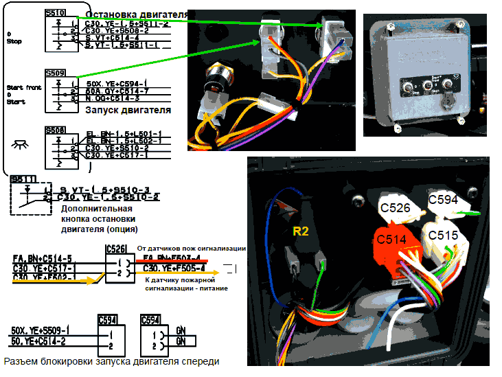4 - Сигнал от S510 (+24 B) тумблера остановки двигателя на реле R507 RP20 Остановки двигателя (см схему EDC)