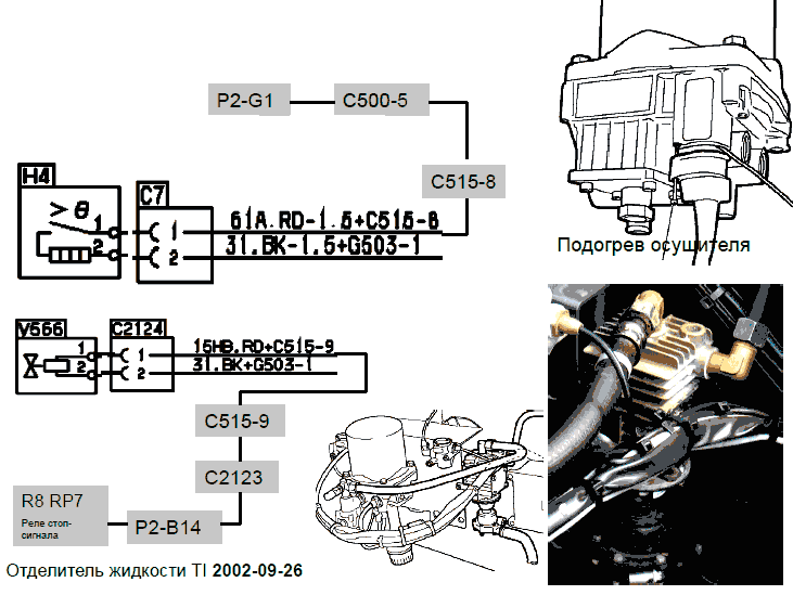 9 - Сигнал на клапан отделителя жидкости V566 от выхода (Р2-В14) реле R8 RP7 стоп-сигнала