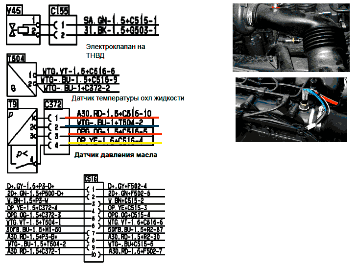 9 - Питание к датчику давления масла от предохранителя