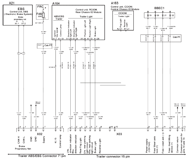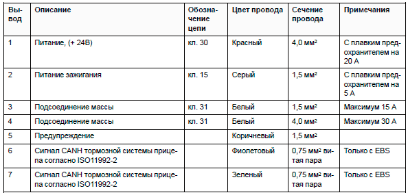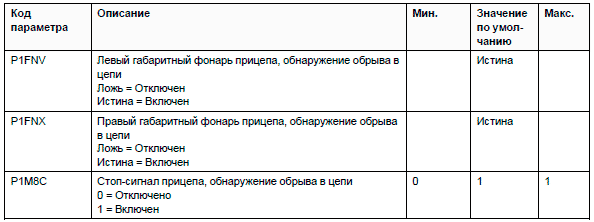 Функция обнаружения прицепа используется системами грузовика для обеспечения надлежащих дорожных качеств грузовика. По этой причине цепи светотехники прицепа должны использоваться только для тех целей, которые описаны в приведенных ниже таблицах.