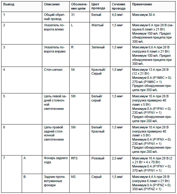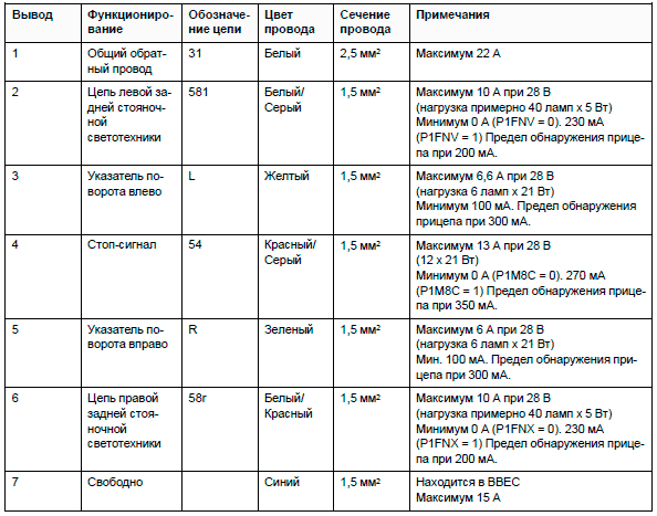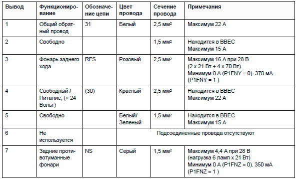• 7 контактные разъемы. Не применяется для автомобилей с разрешением на перевозку опасных грузов.