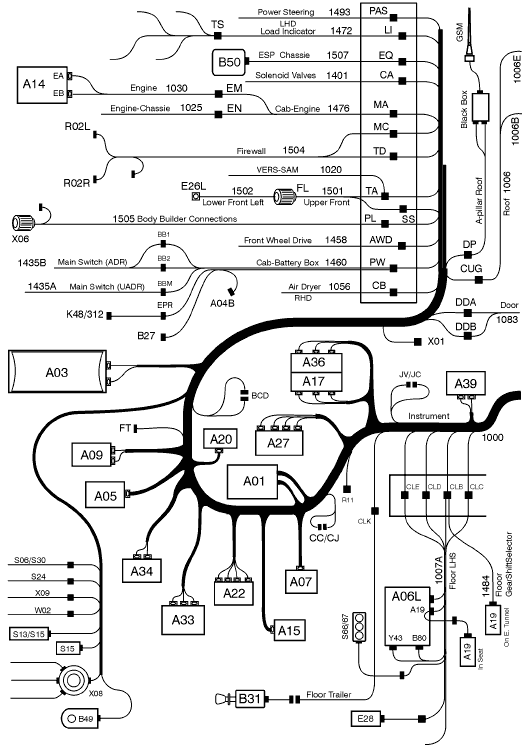 - AUXSW-6 ............ Электропроводка для шести дополнительных выключателей оборудования кузова
