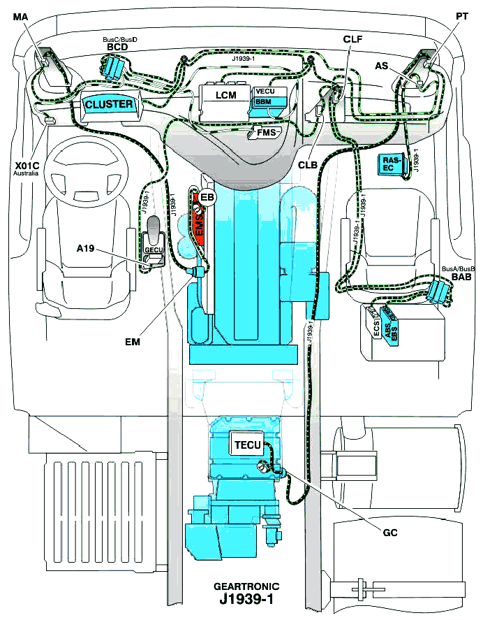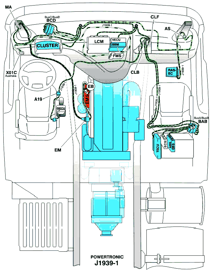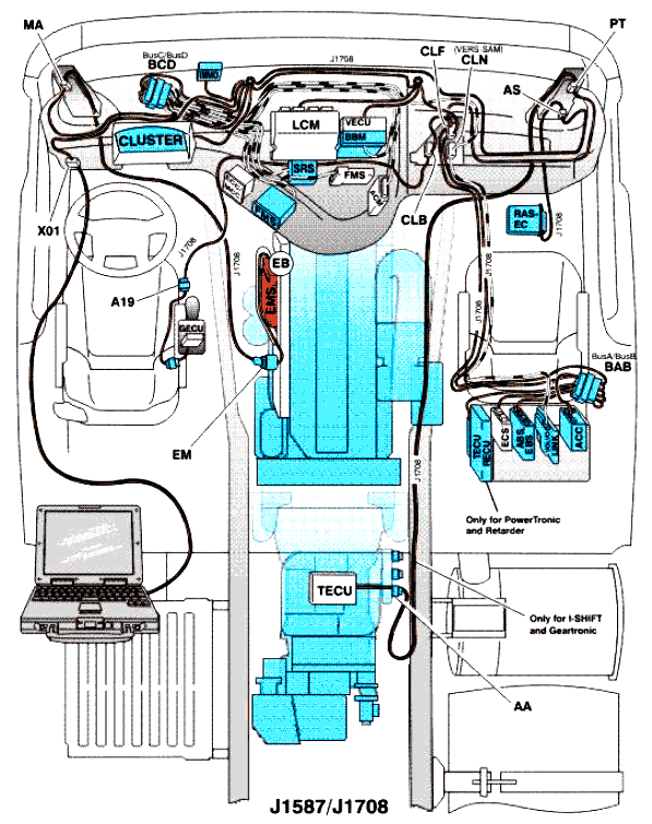 Схема проводки SAE J1587/J1708